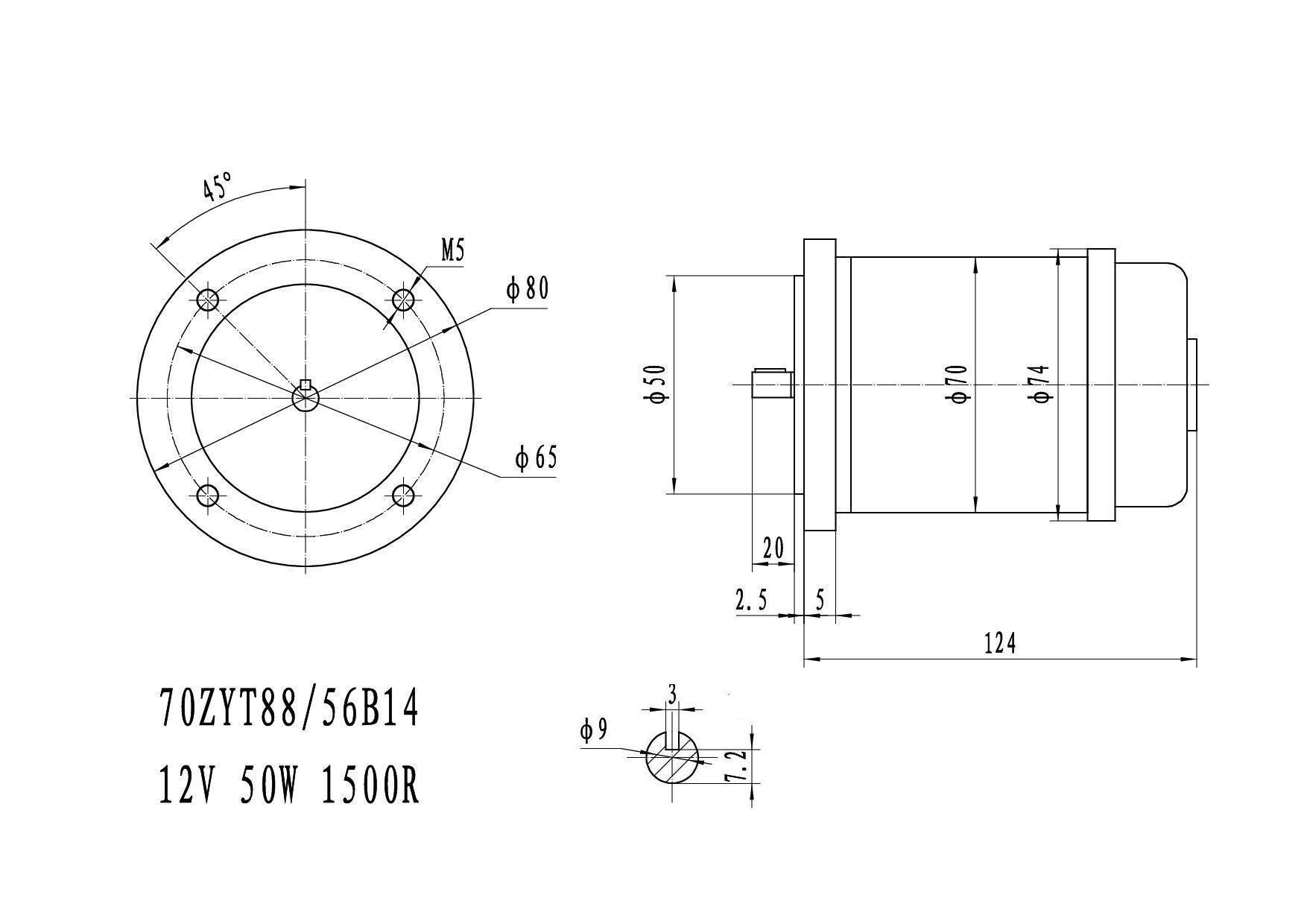 Мотор-редуктор черв'ячний SMW 025 комплектується двигуном постійного струму 70ZYT потужністю 50 Вт з напругою живлення 12 або 24 В (Вмовити під час оформлення замовлення).