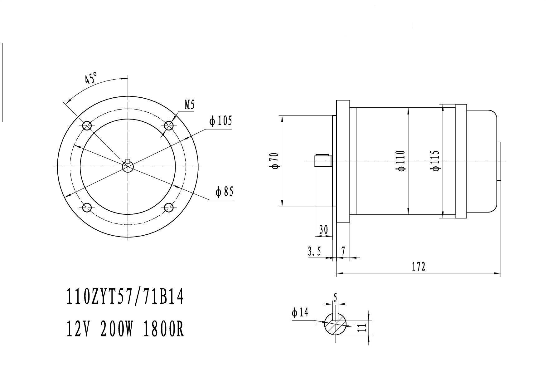 Мотор-редуктор черв'ячний SMW 040 комплектується двигуном постійного струму 110ZYT потужністю 200 Вт з напругою живлення 12 або 24 В (Вмовити під час оформлення замовлення).