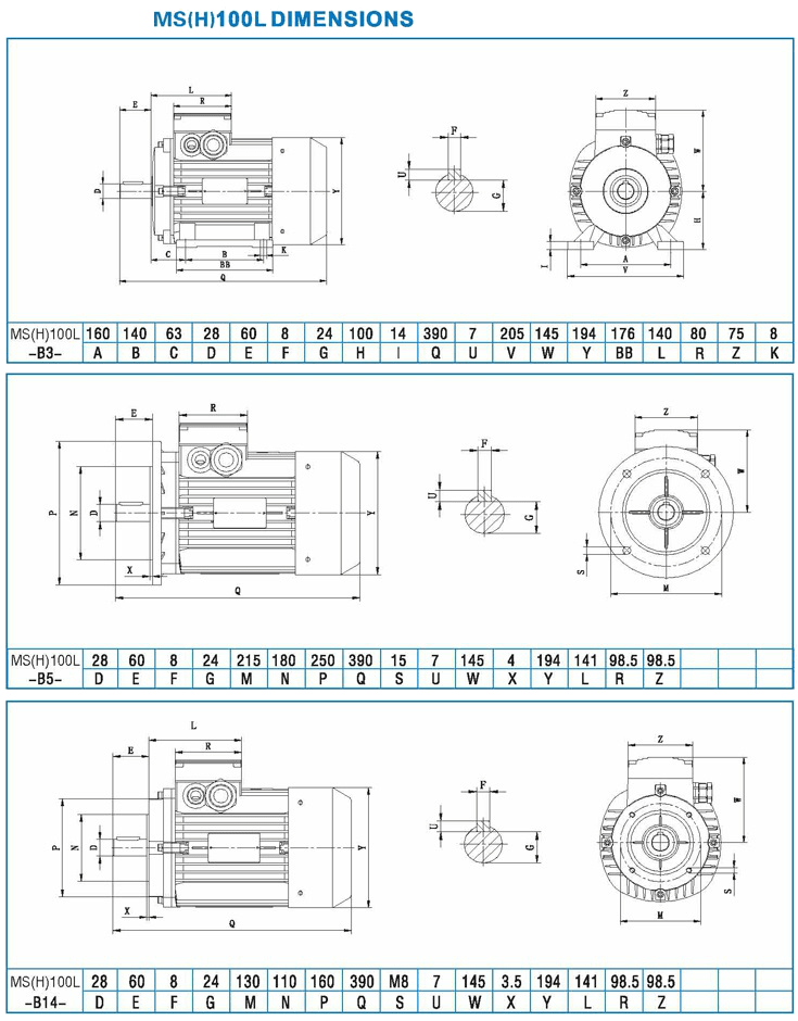 Електродвигун MS100L2-4 B5 має такі параметри: