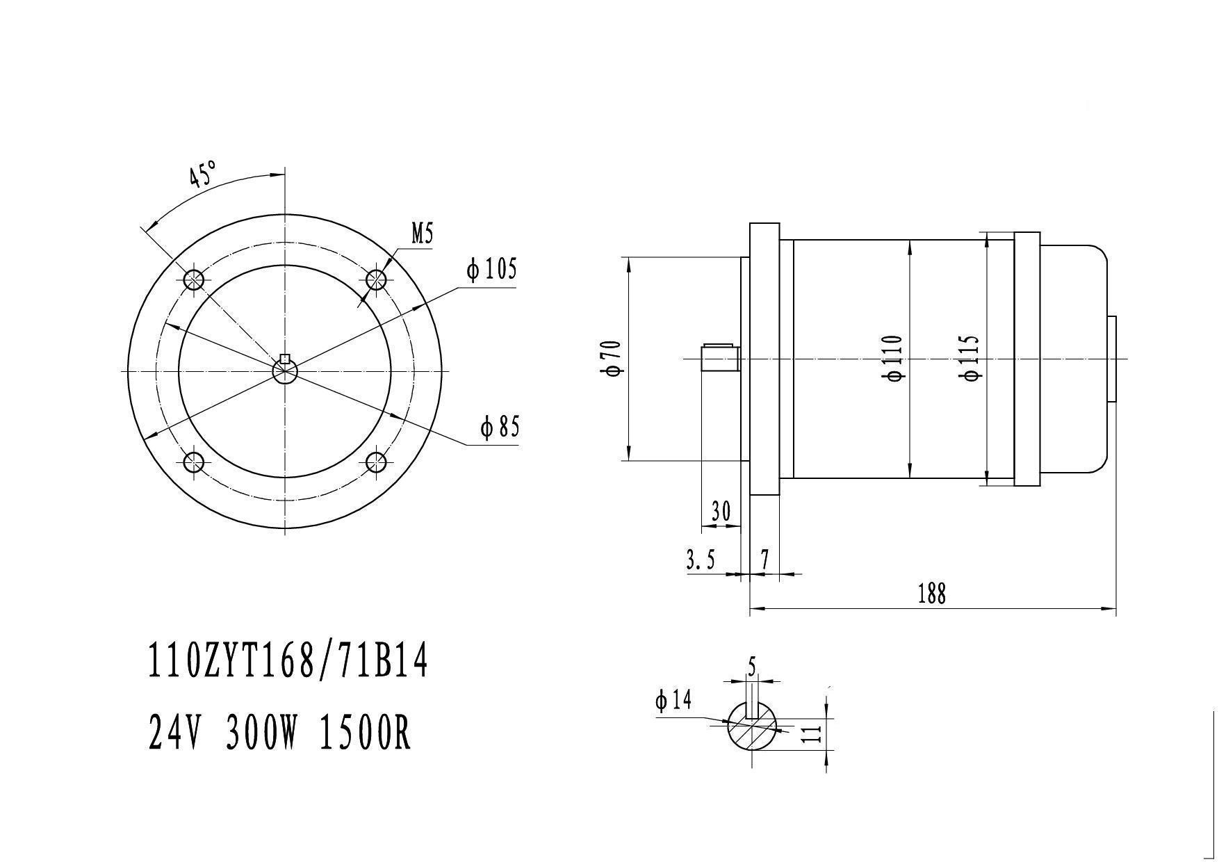 Електродвигун постійного струму 110ZYT155 71B14 (24 VDC), 700 Вт, 3000 об/хв
